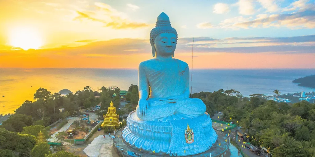 Perched atop Nakkerd Hill, the Big Buddha is not only a cultural landmark but also a remarkable sunrise viewpoint. As you ascend the winding road, you’ll see the sky brighten over Chalong Bay and the surrounding hills. At the top, the gentle morning light adds a peaceful glow to the white marble statue, creating a spiritual atmosphere that feels both grounding and uplifting. The area is usually quiet at this hour, allowing visitors to appreciate the soft sounds of morning chants and the cool mountain breeze.